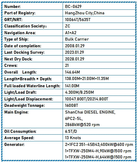 Deadweight Tonnage: 16008T