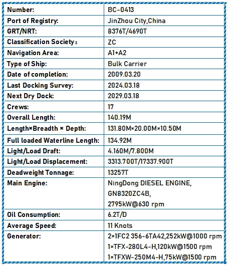 2009 Built 13300 DWT Bulk Carrier For Sale