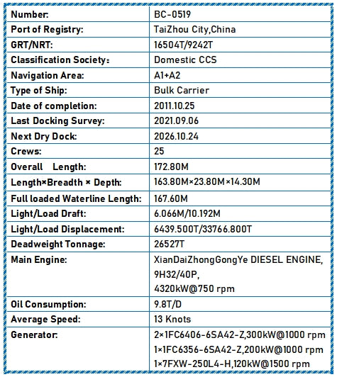 Deadweight Tonnage: 26527T