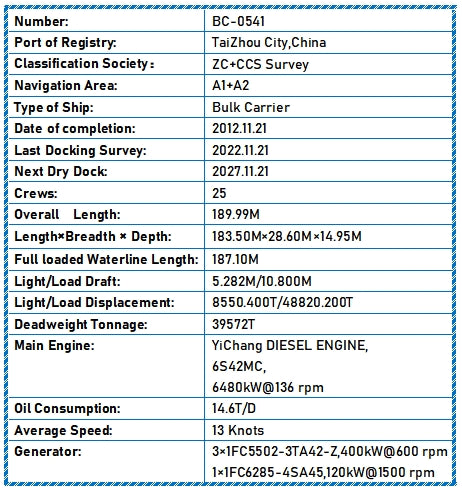 2012 Built 40000 DWT Bulk Carrier For Sale