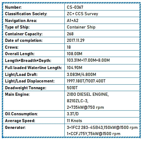 2017 Built 5000 DWT 268 TEU Container Ship For Sale