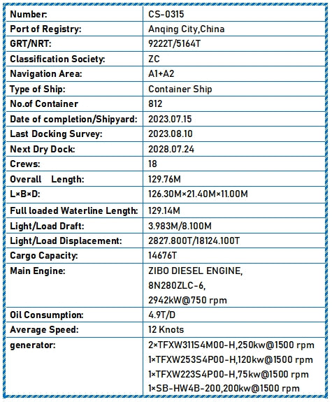 Main Engine: ZIBO DIESEL ENGINE,8N280ZLC-6,