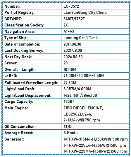 2011 Built 6300 DWT Landing Craft Tank For Sale