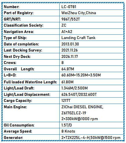 L×B×D: 60.60M×15.20M×3.50M