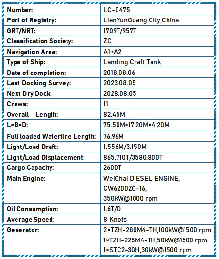 Cargo Capacity: 2600T
