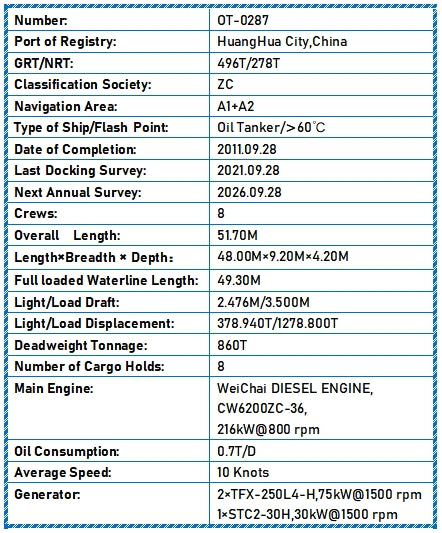 Type of Ship/Flash Point: Oil Tanker/>60℃