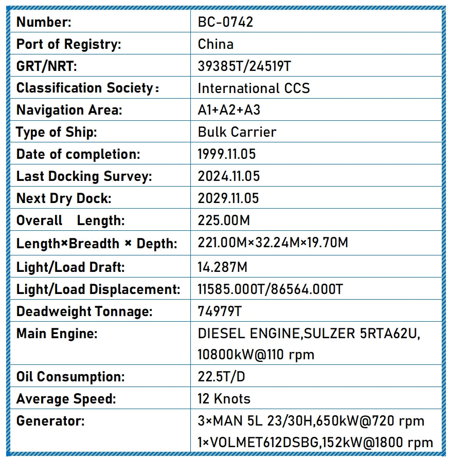 Deadweight Tonnage: 74979T