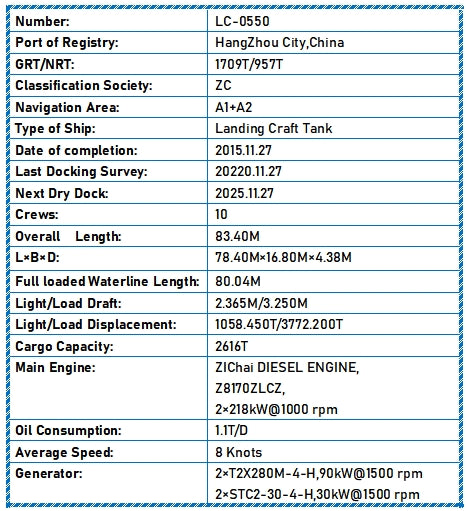 2015 Built 2600 DWT Landing Craft Tank For Sale